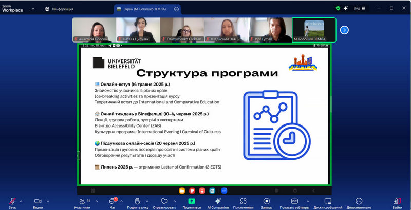 У секції «Student voices» виступили здобувачки факультету дошкільної, спеціальної та соціальної освіти Олександра Даймиченко, Владислава Заєць, Анастасія Шевчук а також студентка соціально-гуманітарного факультету Марія Бобошко. Вони розповіли про досвід участі у програмі академічної мобільності Erasmus+. “Breaking the Bubble: A Course on Comparing Educational Systems Worldwide”, який проходив у Університеті Білефельда (Німеччина). Програма поєднувала онлайн та очні формати, дискусії з міжнародними експертами, групові проєкти і культурні візити. Студентки наголосили, що курс допоміг зрозуміти, як культурні цінності формують системи освіти та впливають на практики інклюзії в різних країнах.