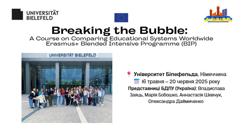 У блоці «Staff @ Bielefeld» своїм досвідом поділилися викладачі БДПУ – Наталя Цибуляк, Ганна Лопатіна, Анастасія Попова та Артем Полуляхов. Їхні стажування в Університеті Білефельда стали прикладом того, як академічна мобільність приносить практичні дивіденди – у науці, освіті та репутації університету. Викладачі розповіли, що участь у міжнародних програмах дозволяє розширити дослідницькі контакти, осучаснити навчальні курси та підсилити позиції університету на академічній карті Європи.
