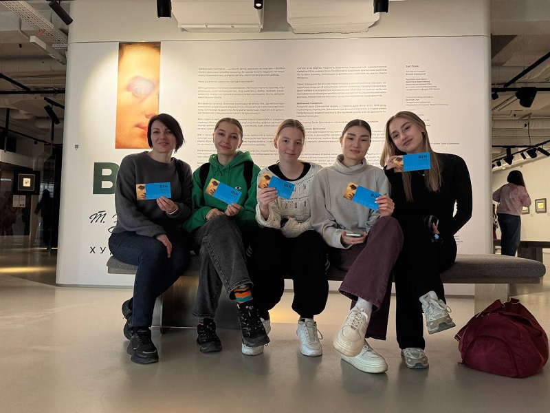 Наступним кроком стало знайомство з візуальною мовою генія. У Zenyk Art Gallery в м. Львів студенти-хореографи разом з доцетками кафедри хореографії та фітнесу Юлією Скибою та Юлією Тараненко відвідали концептуальну виставку «ВІН: Тарас Шевченко. Художник», організовану спільно з Національним музеєм Тараса Шевченка. Побачити 58 живописних і графічних творів — від академічного офорту до експериментальних композицій — означало для майбутніх хореографів відкрити Шевченка як митця європейського масштабу. Ми аналізували, як його візуальні рішення, гра світла та ліній резонують із сучасними мистецькими практиками. В чарівному мистецькому просторі та атмосфері, яка надихає, вийшло пропрацювати невеличкий перформанс. Це виховує у студентів здатність створювати не просто танець, а цілісну візуальну картину на сцені.