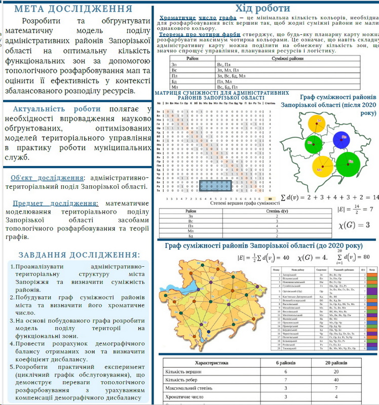 - математичному моделюванню поділу територій за допомогою топологічного розфарбовування мап;