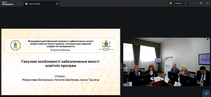 16 жовтня 2025 року відбувся Всеукраїнський фаховий семінар із забезпечення якості вищої освіти в галузі туризму, готельно-ресторанної справи та менеджменту, організований Національним агентством із забезпечення якості вищої освіти у партнерстві з Державним торговельно-економічним університетом, який об’єднав галузеву академічну спільноту- понад 150 очних та понад 280 дистанційних учасників.