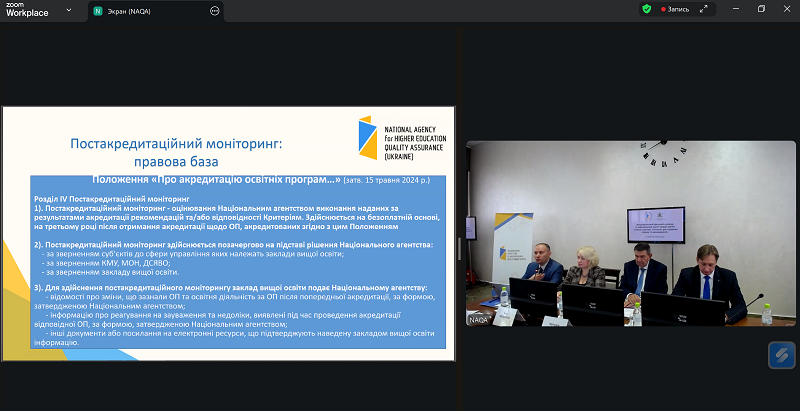 The purpose of the seminar was to discuss current issues related to improving the quality assurance system of higher education in the context of modern challenges, integrating Ukrainian education into the European Higher Education Area, and implementing best practices in academic integrity, institutional development, and educational program accreditation.
