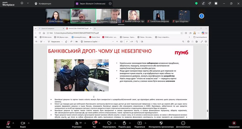 An online meeting was held between students of Berdyansk State Pedagogical University and representatives of PUMB Bank, during which participants gained valuable knowledge about financial literacy.