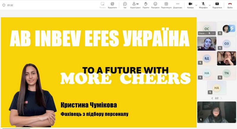 Перша була представлена Кристиною Чуміковою, фахівцем із підбору персоналу, яка докладно розповіла про можливості молоді в міжнародній компанії та про те, як потрапити в команду, що цінує розвиток, ініціативність і відкритість до нового. Вона звернула увагу на те, як правильно презентувати себе на етапі відбору, які компетентності є найбільш затребуваними, чому важливо починати професійний розвиток ще під час навчання та яким чином участь у студентських і волонтерських проєктах може підсилити резюме. Студенти активно ставили запитання щодо перших кроків у кар’єрі, можливостей стажування та шляхів потрапляння до команди AB InBev Efes Україна.