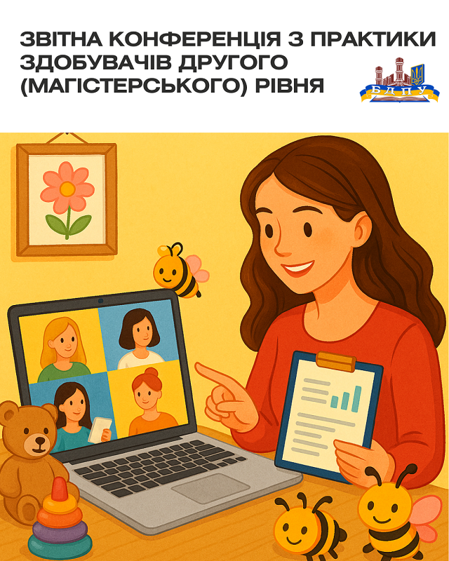 На факультеті дошкільної, спеціальної та соціальної освіти відбулася звітна конференція здобувачів другого (магістерського) рівня вищої освіти освітньо-професійної програми «Дошкільна освіта» спеціальності А2 Дошкільна освіта групи М21ДО. З 3 по 28 листопада 2025 року здобувачі проходили педагогічну практику зі спеціалізації (виробничу) та презентували свої напрацювання та враження. Керівниці практики — доцентка кафедри прикладної психології та логопедії, кандидатка педагогічних наук Ганна Лопатіна та старша викладачка кафедри прикладної психології та логопедії Дарина Литивиченко —супроводжували роботу здобувачів і на звітній конференції відзначили їхні найкращі досягнення.